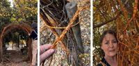 Hoy van formando parte anual del portal de las hadas y duendes del Bosque Encantado del Herbarium. El entretejerlas con la primera parte del portal que se empezó a gestar hace un año, el trenzar sus partes más finas, casi hebras, reconociendo en ellas su poder de generar alimento, el sentirlas húmedas y dúctiles entre mis dedos y experimentar un acto de ancestral práctica, produjo no solo una enorme paz sino un inmenso placer y alegría.